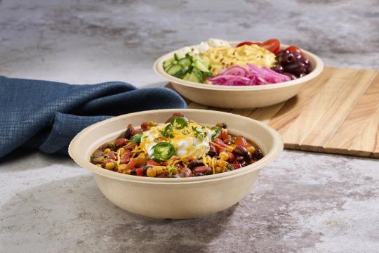 Sabert’s environmentally friendly Green Collection includes a full line of molded fiber pulp compostable bases with recyclable plastic lids, offering everything from soup bowls and containers to catering platters and plates. Made in USA